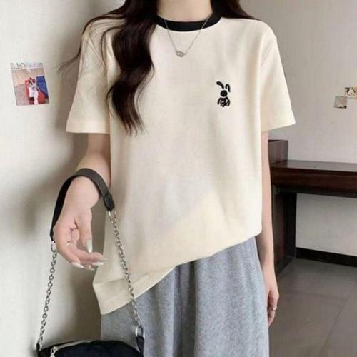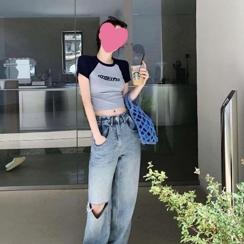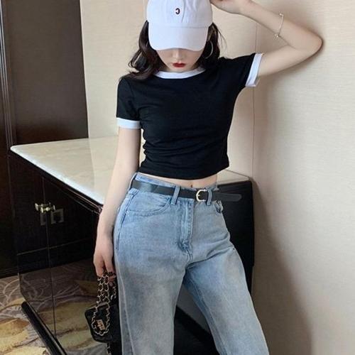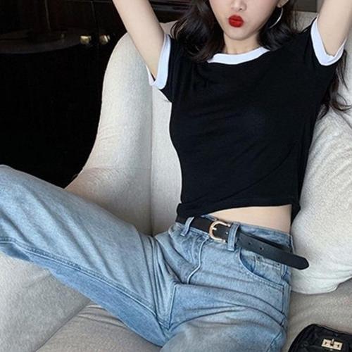 라운드넥 반팔티셔츠 롱티셔츠 귀여운 크롭티 스 WFLQAMD