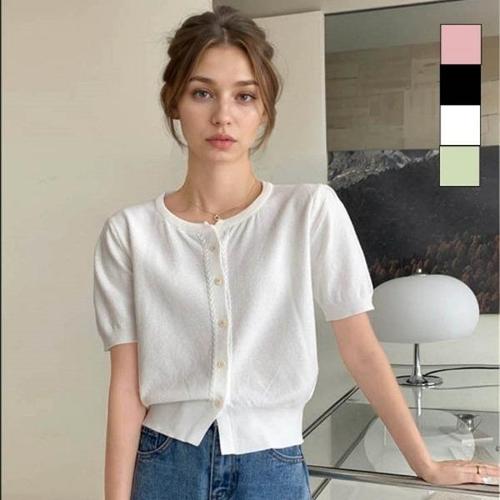 [엄지척]여름 시원한 편한 여성 꽈배기 크롭가디건 반팔티셔츠_19610966_667501