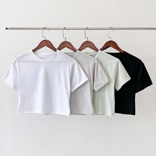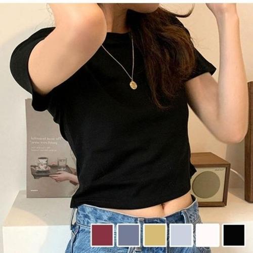 [엄지척]여름 여성 베이직 무지 심플 데일리 크롭 반팔티셔츠_19615030_667501