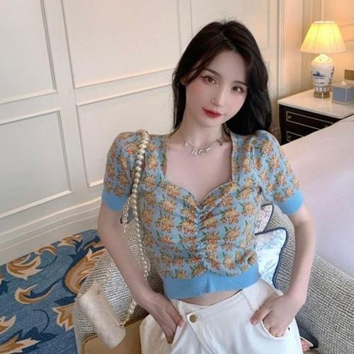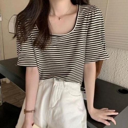 [엄지척]여름 슬림핏 여성 스퀘어넥 캐주얼 크롭 반팔티셔츠_19613526_667501
