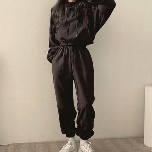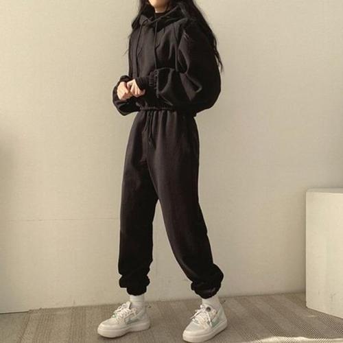 [다잇템]여자 데일리 코튼 크롭 후드 조거팬츠 세트