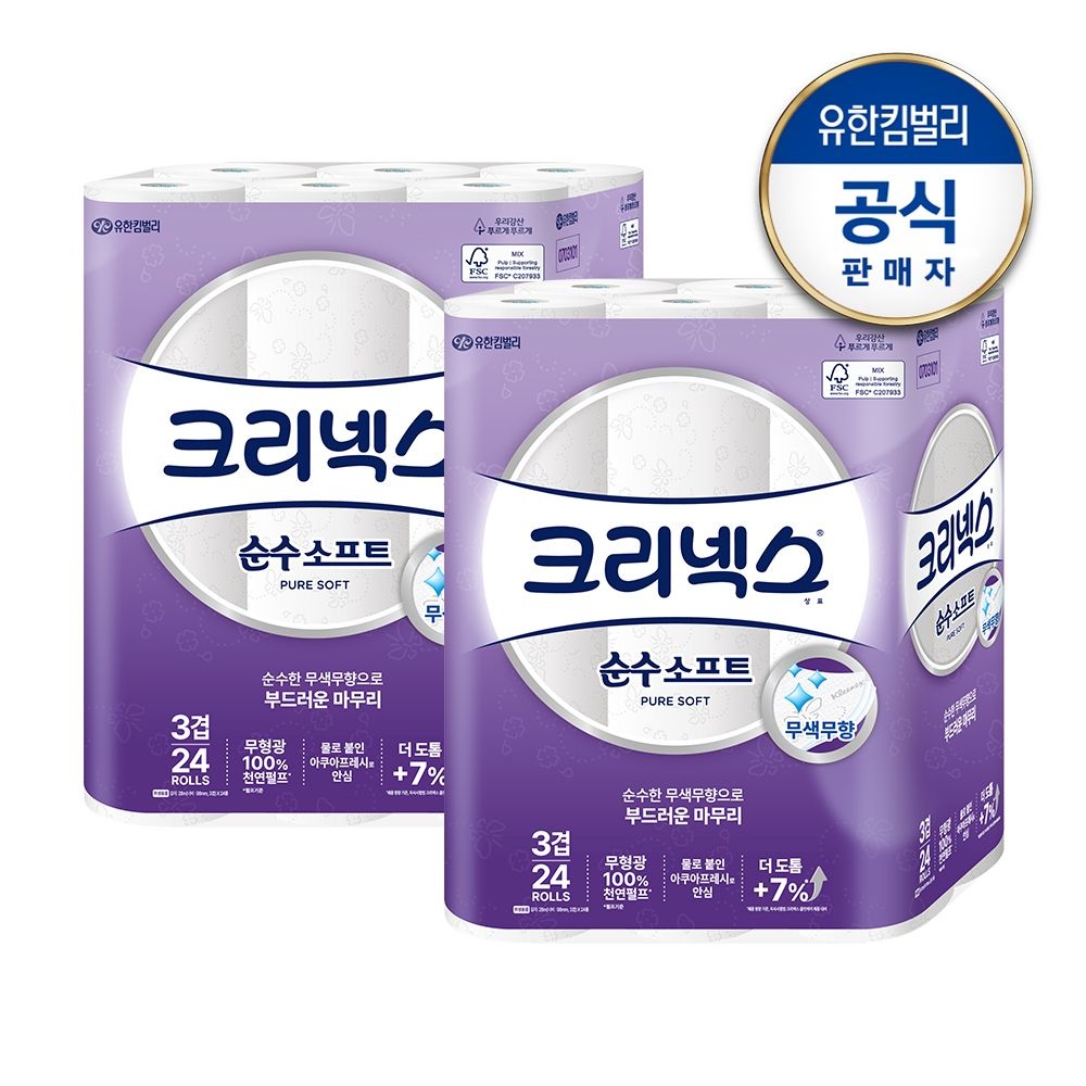 [유한킴벌리]크리넥스 3겹 순수소프트 화장지 28M-24롤X2팩