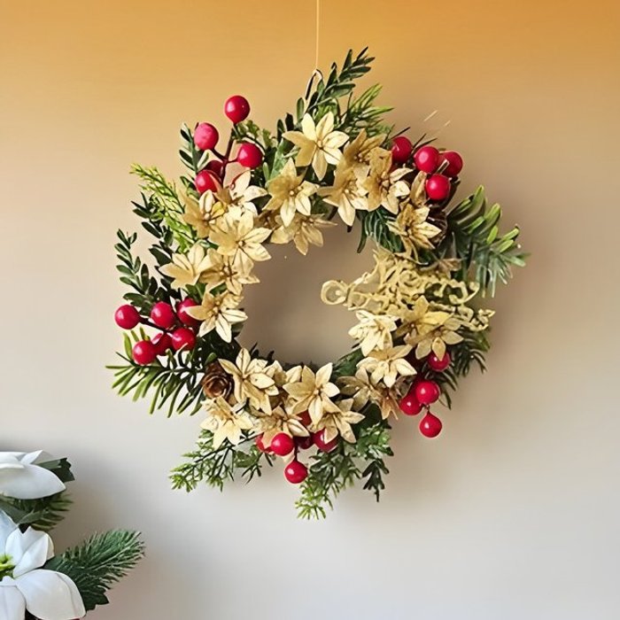 포인세티아 크리스마스 가렌더 조화 벽걸이장식 꽃리스 트리 장신구 도어 트리용