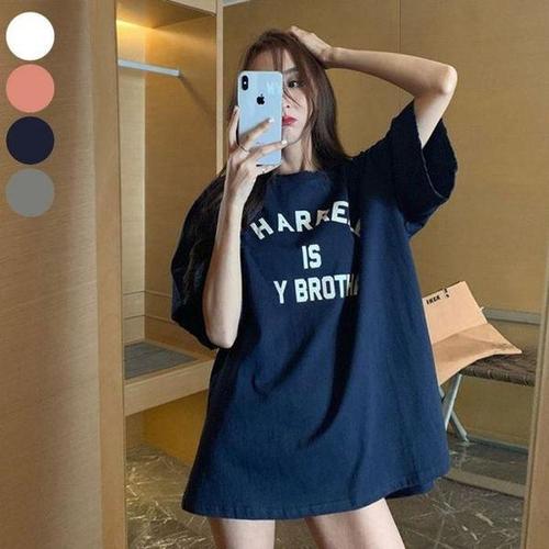 [라일리여성의류] Rly 보세 여름 반팔티 큰 라운드넥 여자 오버핏 티셔