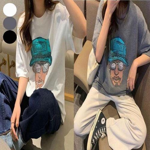 [셀러허브_여성트랜드패션]여자 라운드넥 큰 면 루즈핏 여름 반팔 반팔티 티셔츠