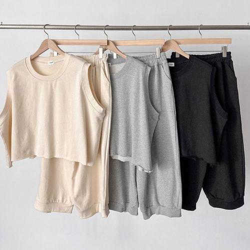 [다잇템]여자 통바지 큰주머니 컷오프 슬리브리스 세트