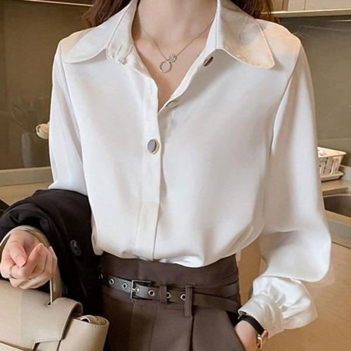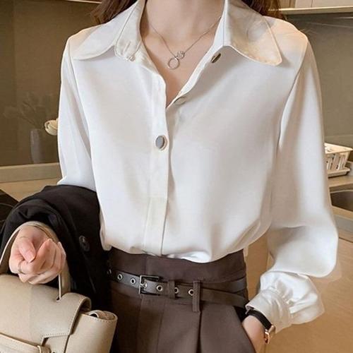 [엄지척]클래식 여성 베이직 긴팔 블라우스 화이트_19660400_667501