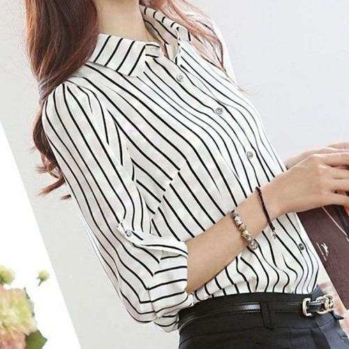 [엄지척]잔 셔츠 남방 여성 스트라이프 단가라 클래식 카라_19649626_667501