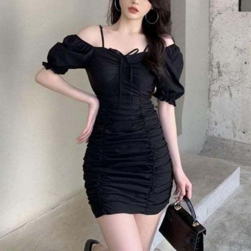 [셀럽하우스]여름 YZHO0740 숏 데일리 오프 원피스 클래식 숄더 셔링 퍼프