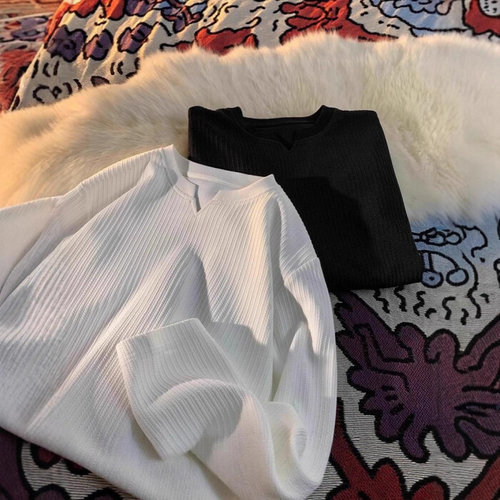 제로투올샵2 / 클린핏 남성 오버사이즈 브이넥 긴팔 티셔츠 화이트 m