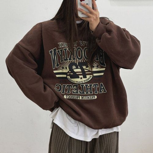 여성 부르클린 레터링 약기모 오버핏 맨투맨 티셔츠 WFLQNOE
