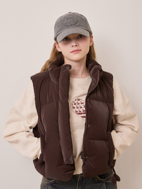 [키르시] 체리 크롭 푸퍼 다운 베스트 [브라운]