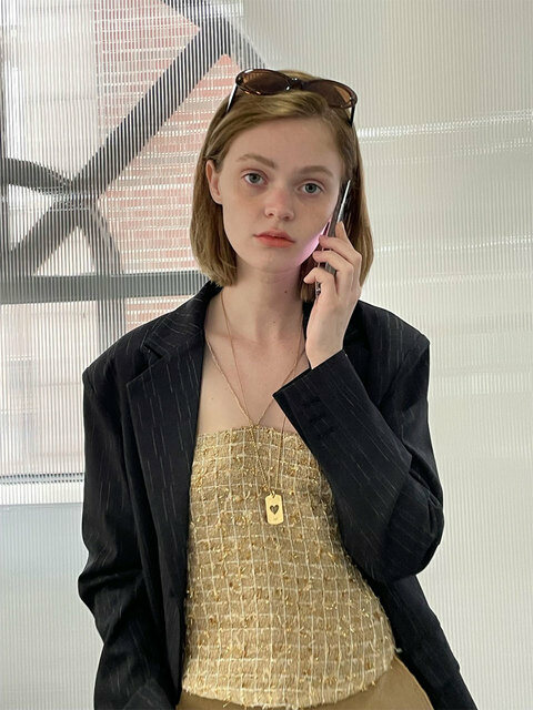[소프트서울] 키세스 트위드 홀터넥 탑 [골드]