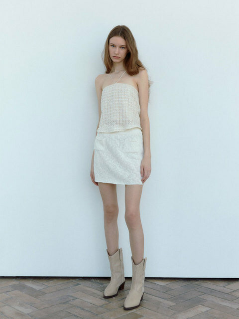 [소프트서울] 키세스 플라워 홀터 넥 탑_크림 아이보리