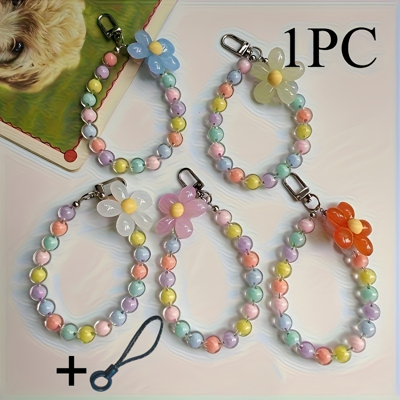 TEMU 패션 마카롱 컬러 비즈 플라워 핸드메이드 휴대폰 슬링 스타일 핸드 웨이브 휴대폰 체인 팔찌, 여성용 펜던트 휴대폰 랜야드 휴대용 체인 손목 비즈 방지 휴대폰 체인 5종 세트