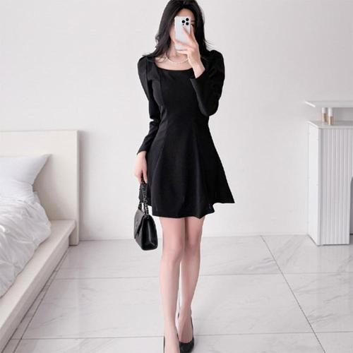 [신상오픈런]키작녀 스퀘어넥 검정색 미니원피스 프린세스라인