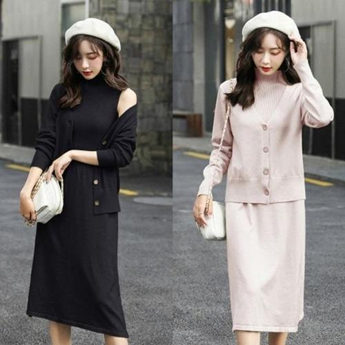 [엄지척]쓰리피스 가디건 반폴라 민소매 원피스 세트 여자_19861757_667501