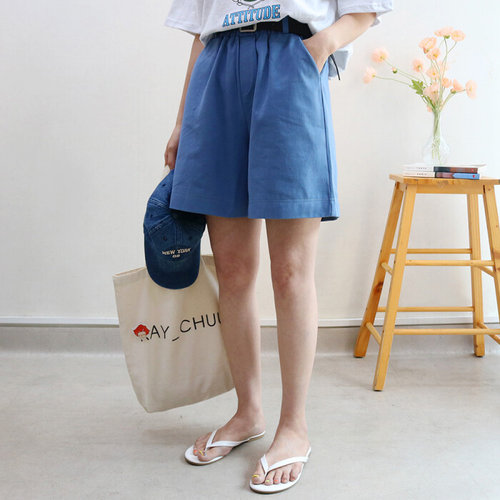 레이츄 / 조이풀 컬러 코튼 벨트 세트 밴딩 반바지 (4컬러)