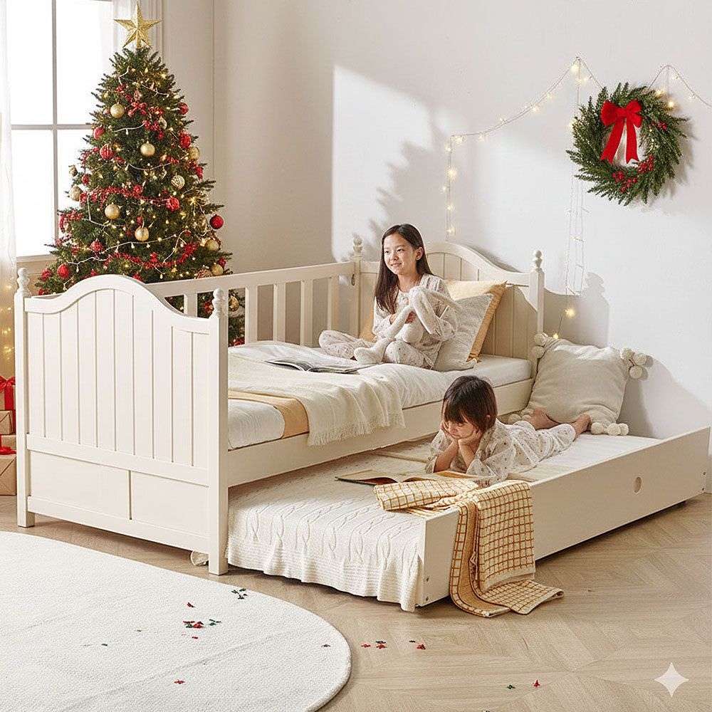 샐리 원목 어린이 2단 슬라이딩 침대(매트리스 선택)(1단 매트리스 포함)