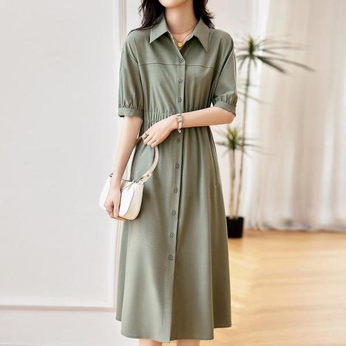 [퀸이즈][퀸이즈] [77까지]테멘 허리 밴딩 미디 카라 원피스