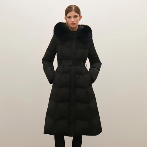 [샤틴]벨티드 구스다운 롱 패딩 코트/S254M853A