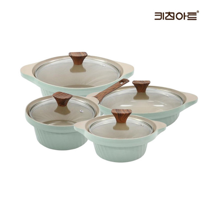 키친아트 키친아트 와이즈 IH 인덕션용 세라믹코팅 냄비세트 4종B(편수18+양수16+20+전골24)