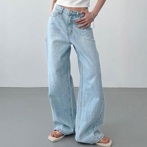 [옷자락]여자 연청 배기진 키큰녀 밴딩 봄여름 청바지