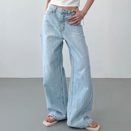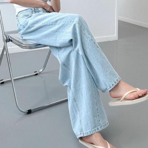 [옷자락]여자 맥시와이드 키큰녀 커브드 사선절개 여름 청바지