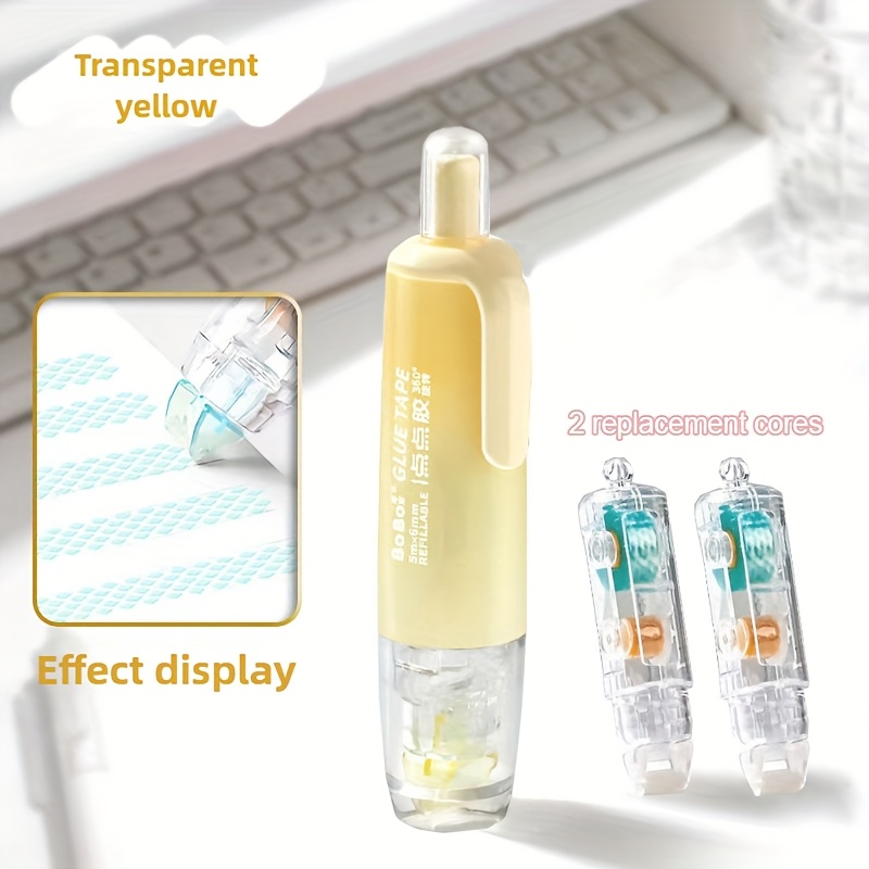 TEMU 360° 회전 가능한 헤드가 있는 3개 듀얼사이드 테이프, DIY 공예, 사진 앨범, 콜라주, 문구용품에 이상적 - 학교 및 사무용 컴팩트 PET 소재 롤러 테이프