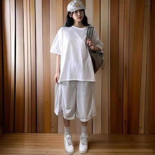 [신상오픈런]여성용 루즈핏 반소매 라운드넥 빅로고 코튼 티셔츠