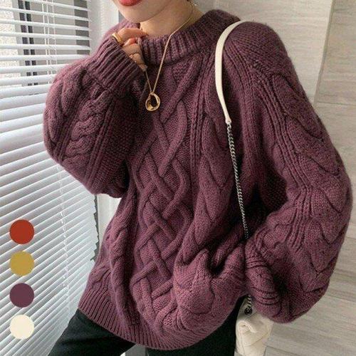 [모노무드]MNO 여성용 두툼케이블니트 니트스웨터 레이디 체크무늬 스탠다드 크루넥