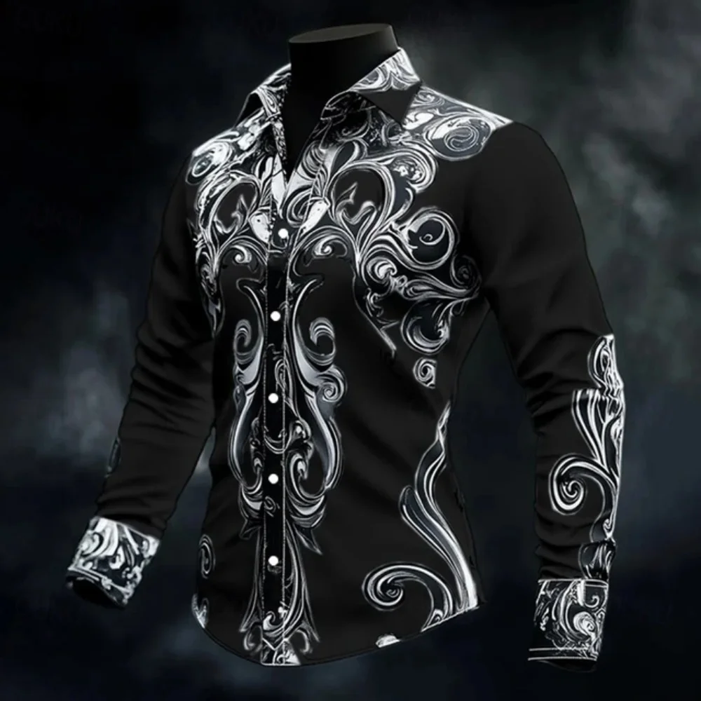 에스닉 스타일 그래픽 3D 프린트 휴가 단추 남성 의류, 럭셔리 남성 셔츠, 캐주얼 반팔 레트로 셔츠, 남성 탑, 가을