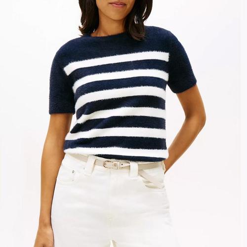 [해외배송] 타미 여성 스트라이프 퍼지 반팔 스웨터 Navy