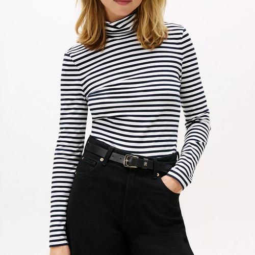 [해외배송] 타미 여성 스트라이프 티틀넥 티셔츠 Navy White
