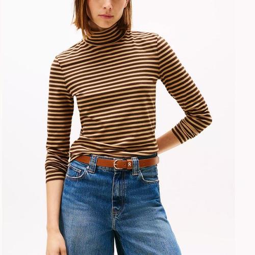 [해외배송] 타미 여성 롱슬리브 스트라이프 티틀넥 티셔츠 Coffee