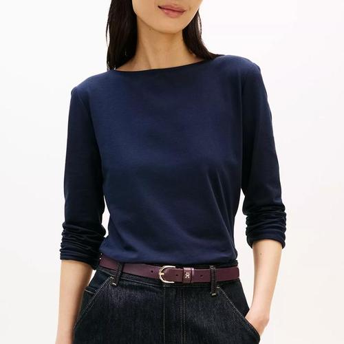 [해외배송] 타미 여성 얇은 보트넥 티셔츠 Navy