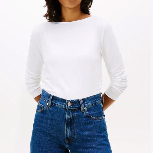 [해외배송] 타미 여성 얇은 보트넥 티셔츠 White
