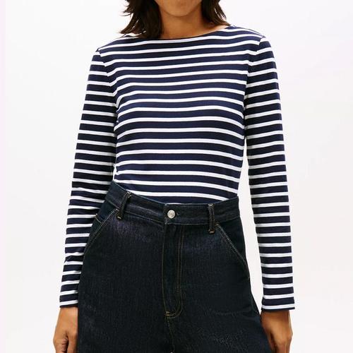[해외배송] 타미 여성 얇은 보트넥 티셔츠 Navy Multi