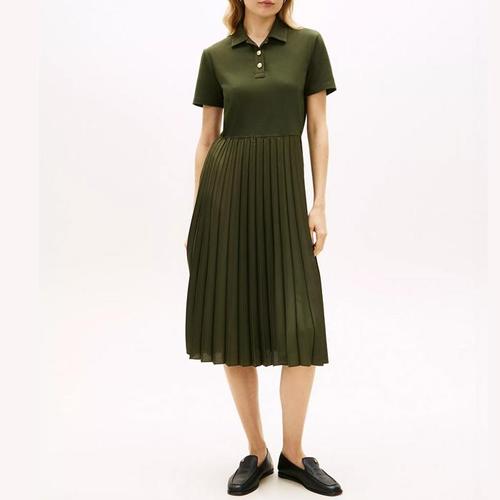 [해외배송] 타미 여성 골드버튼 믹스 미디어 폴로 드레스 Olive