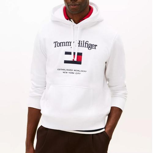 [해외배송] 타미 남성 플래그 플렉스 플리스 후디 White