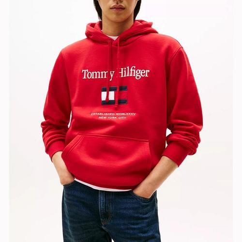 [해외배송] 타미 남성 엠브로이더 플래그 플렉스 플리스 후디 Red