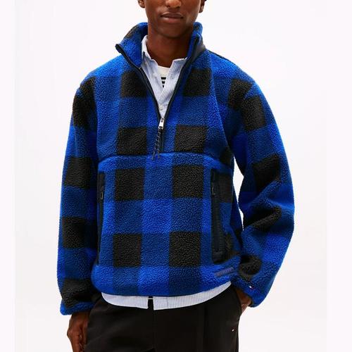 [해외배송] 타미 남성 체크 테디 플리스 쿼터 지퍼 자켓 Blue