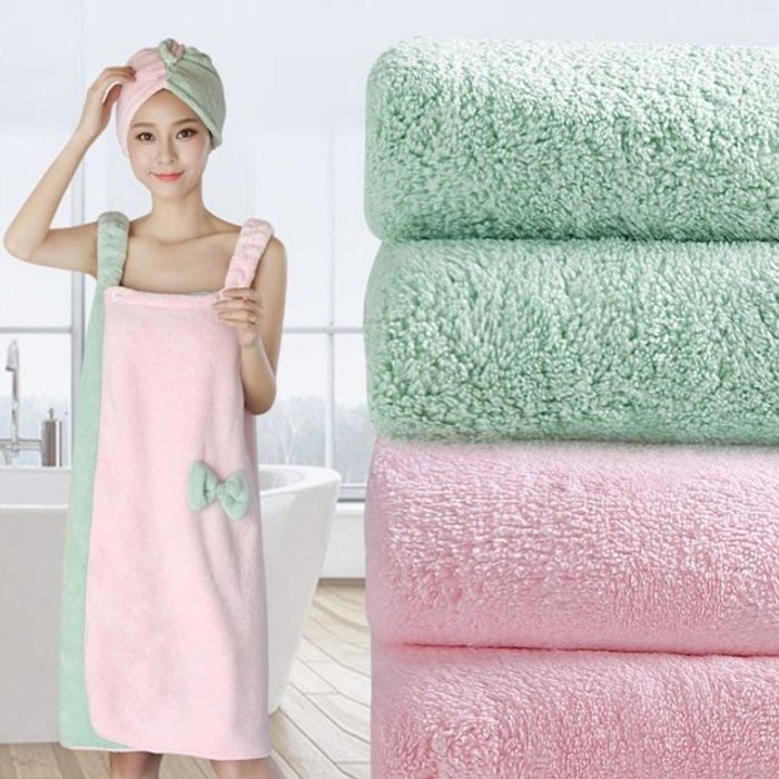 엄지척 쿨샵 극세사 샤워가운 리본치마 랩샤워가운 타올