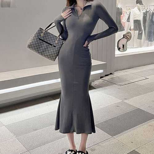 슈팅스타 / 브이넥 카라넥 슬림 타이트 지퍼 머메이드원피스