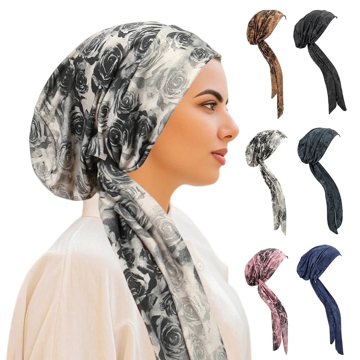 여성용 이슬람 모자 히잡, 트렌디 꽃 머리 스카프 언더캡 보넷, 무슬림 터번 모자, 숙녀 머리 랩, 반다나 해골 모자
