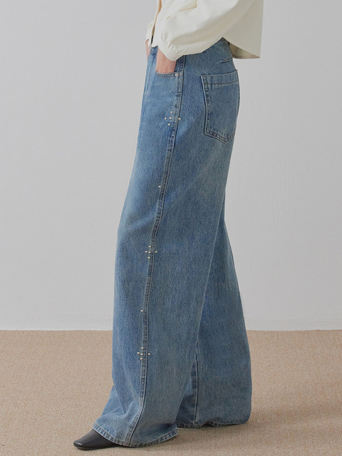 [탑걸] 스터드 빈티지 워싱 데님 팬츠_T521DE403
