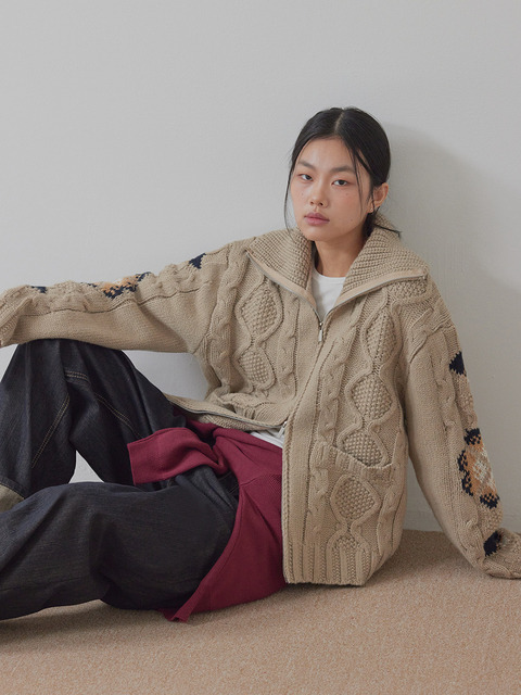 [탑걸] 빈티지 케이블 니트 집업_T521OT814