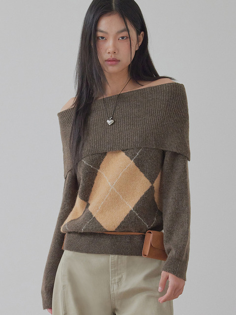 [탑걸] 아가일 오프숄더 니트_T521TP117