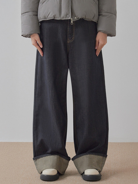 [탑걸] 논페이드 스티치 롤업 와이드 팬츠_T521DE401