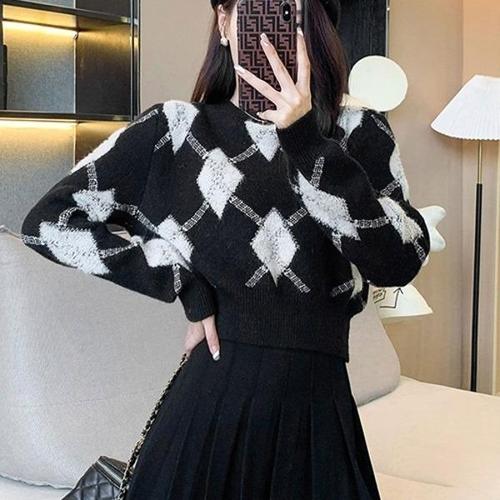 [엄지척]다이아 배색 니트 탑 라운드넥 밑단 시보리_19681966_667501